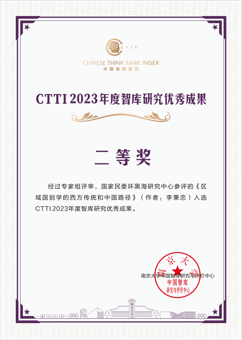 论坛发布了CTTI2023年度智库建设最佳案例与智库研究优秀成果。由国家民委环黑海研究中心申报的《深耕环黑海区域研究,积极应对国际格局演变》案例荣获CTTI2023年度智库建设最佳案例示范案例(全国39项),论文《区域国别学的西方传统和中国路径》(作者:李秉忠)荣获CTTI2023年度智库研究优秀成果二等奖;陕西师范大学土耳其研究中心提交的成果《沙特阿拉伯发展史:权力、政治与稳定》(作者:[英]蒂姆·尼布洛克著、郭响宏译、李秉忠审校)荣获CTTI2023年度智库研究优秀成果二等奖。