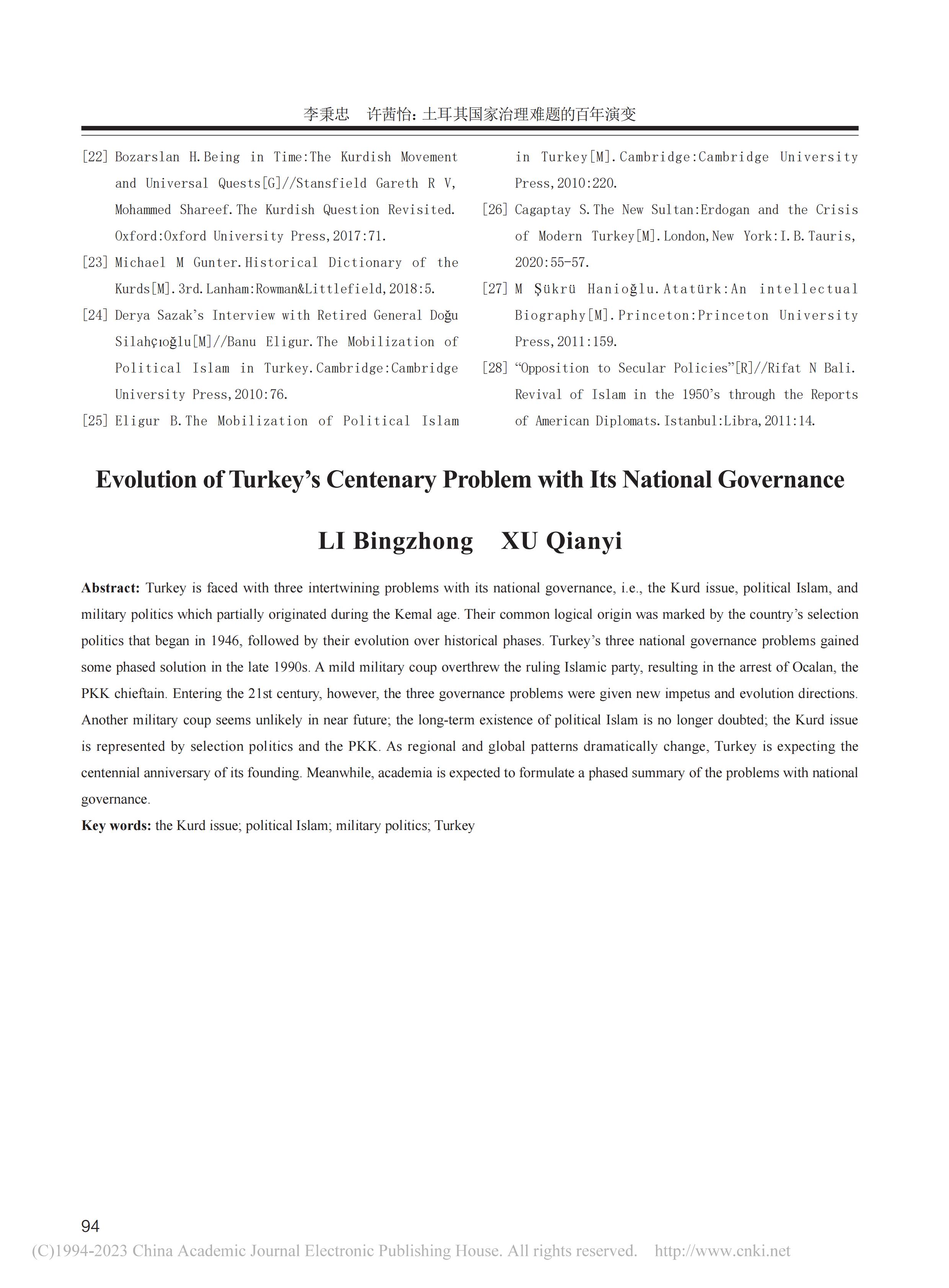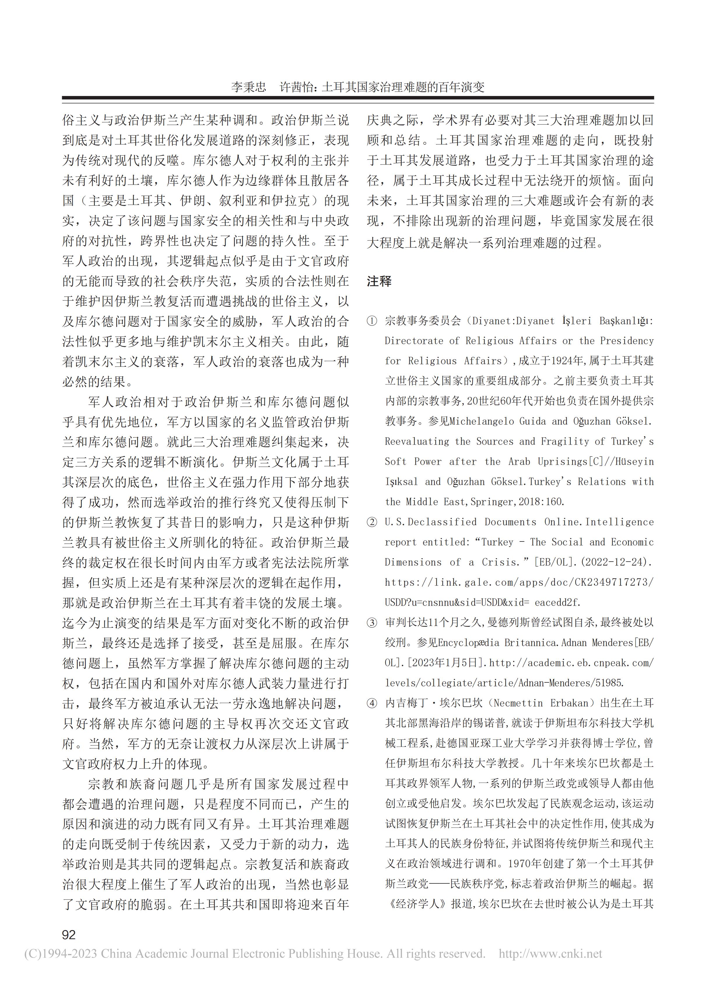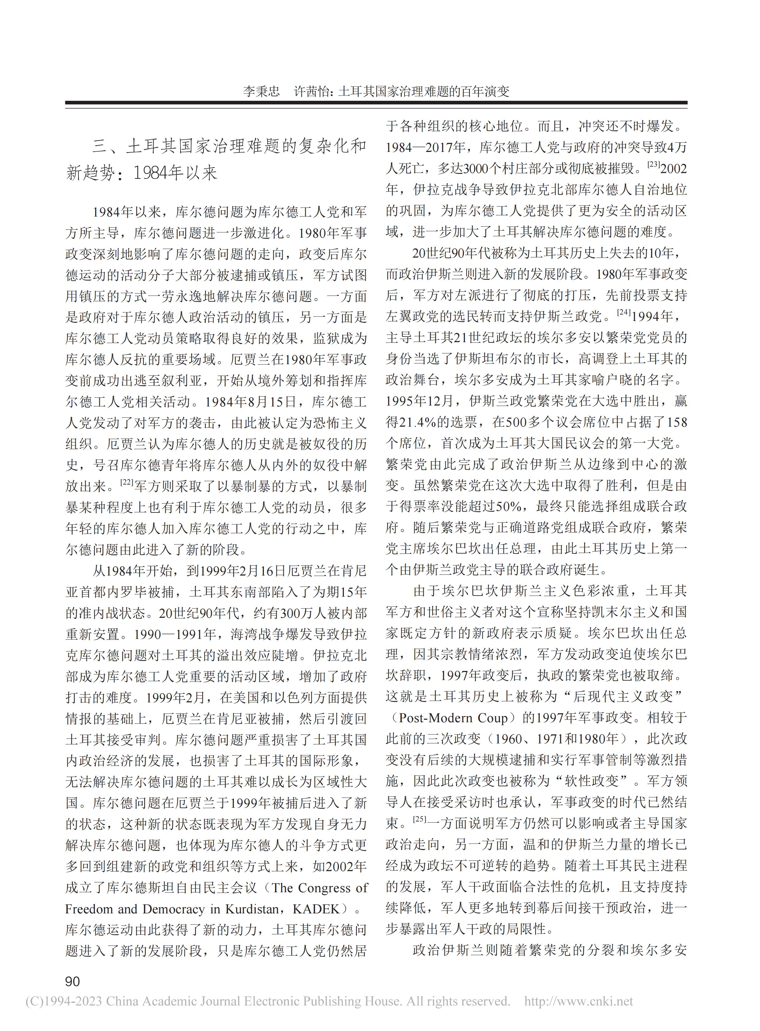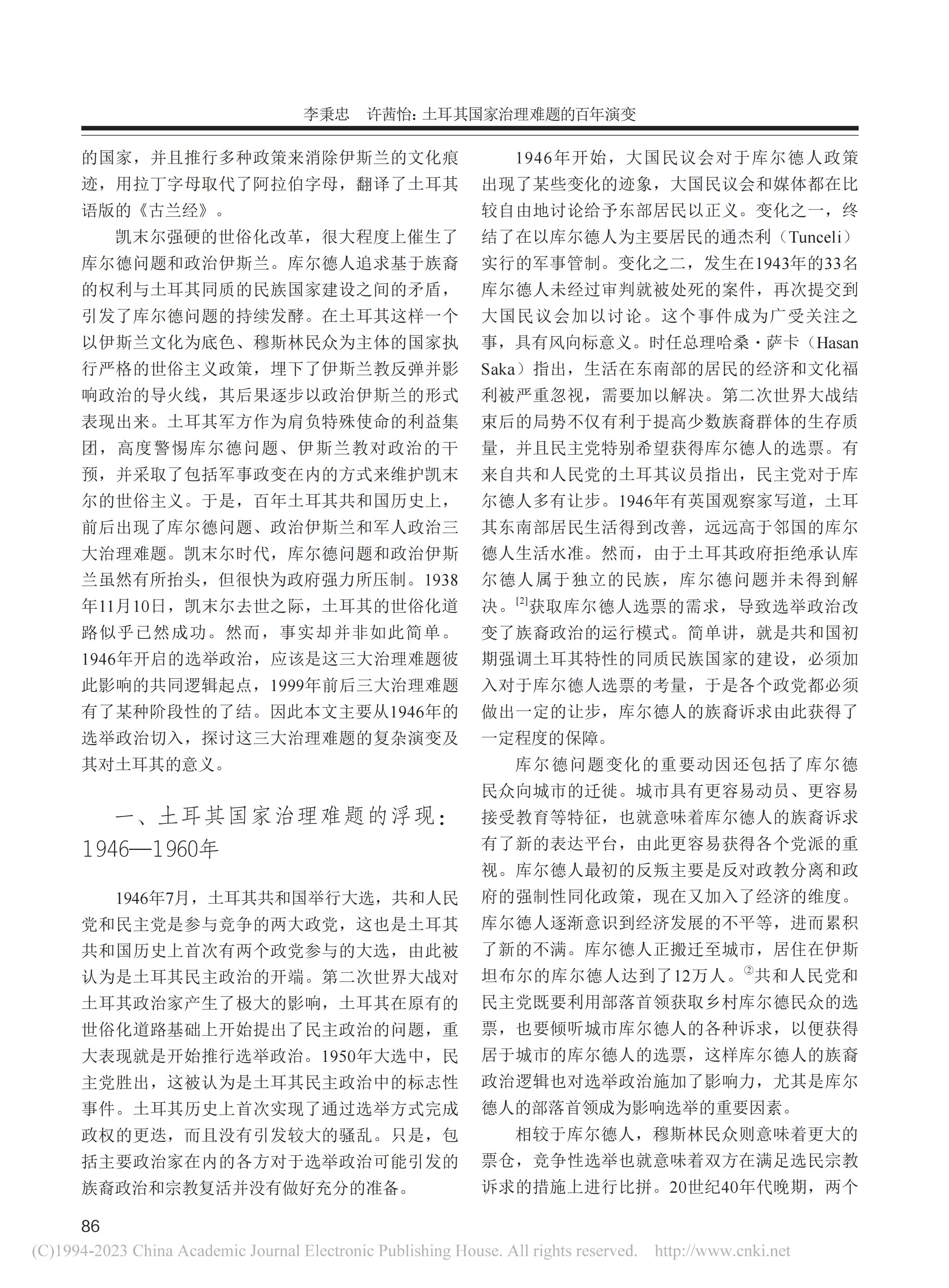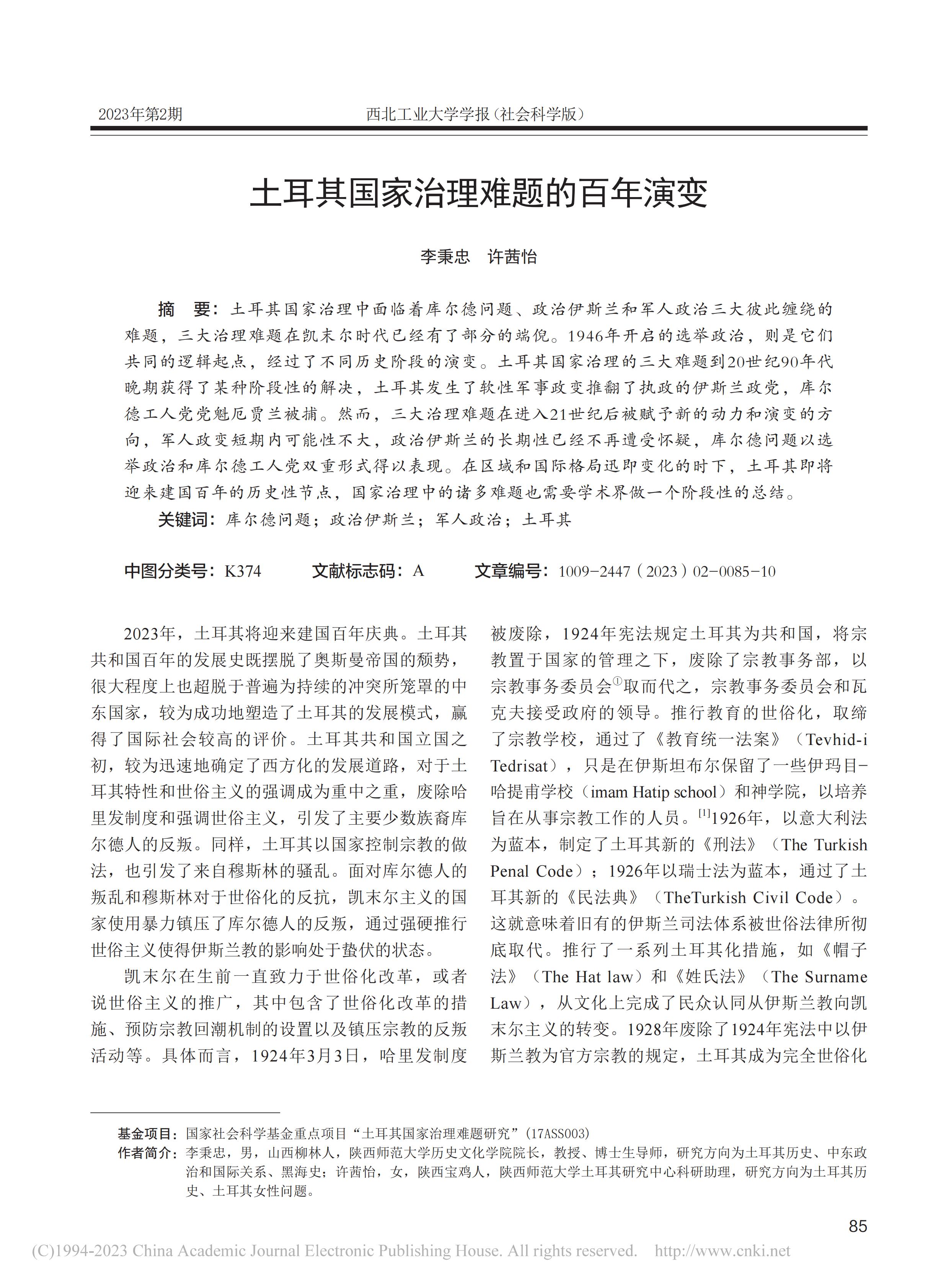 中心主任李秉忠教授、科研助理许茜怡在《西北工业大学学报(社会科学版)》2023年第2期上发表文章《土耳其国家治理难题的百年演变》,全文如下: