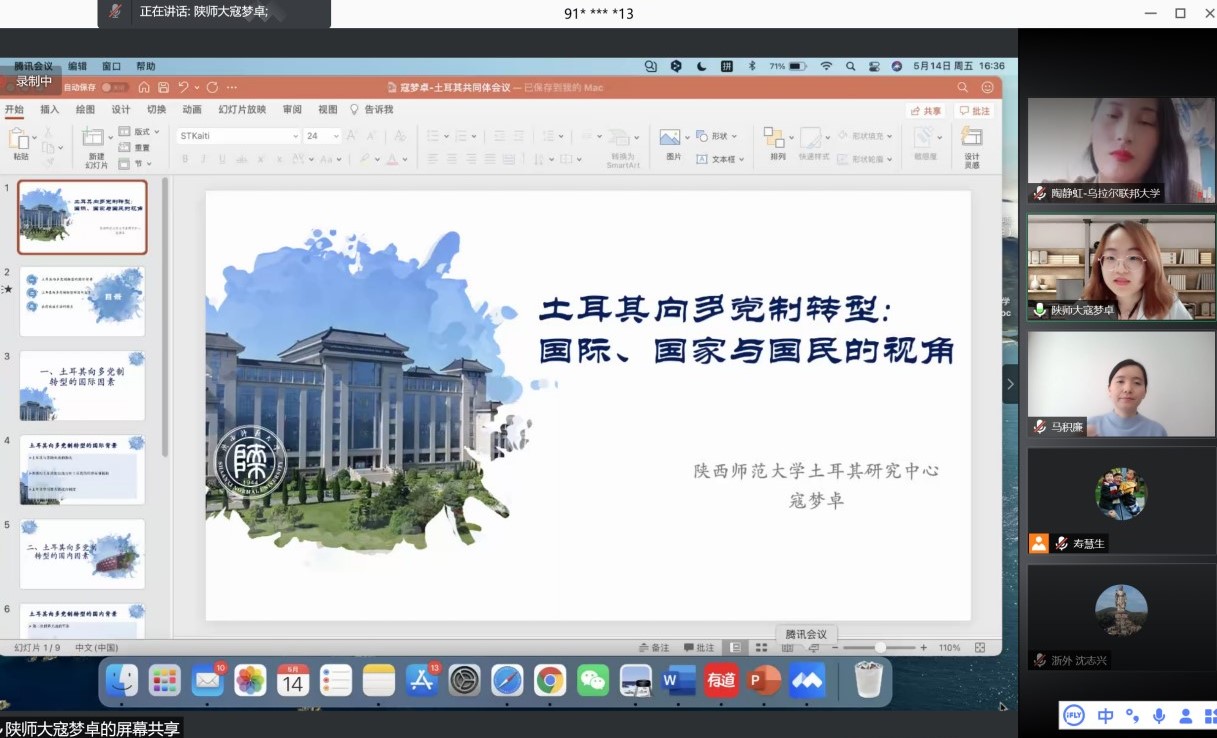 2021年5月14日,土耳其研究共同体首届研讨会“面向未来的中土关系——纪念中土建交 50 周年”在腾讯会议举办。中心主任李秉忠教授应邀在开幕式致辞。中心硕、博士研究生寇梦卓、刘姜、张玮和孙濛奇在会上进行报告发言。
