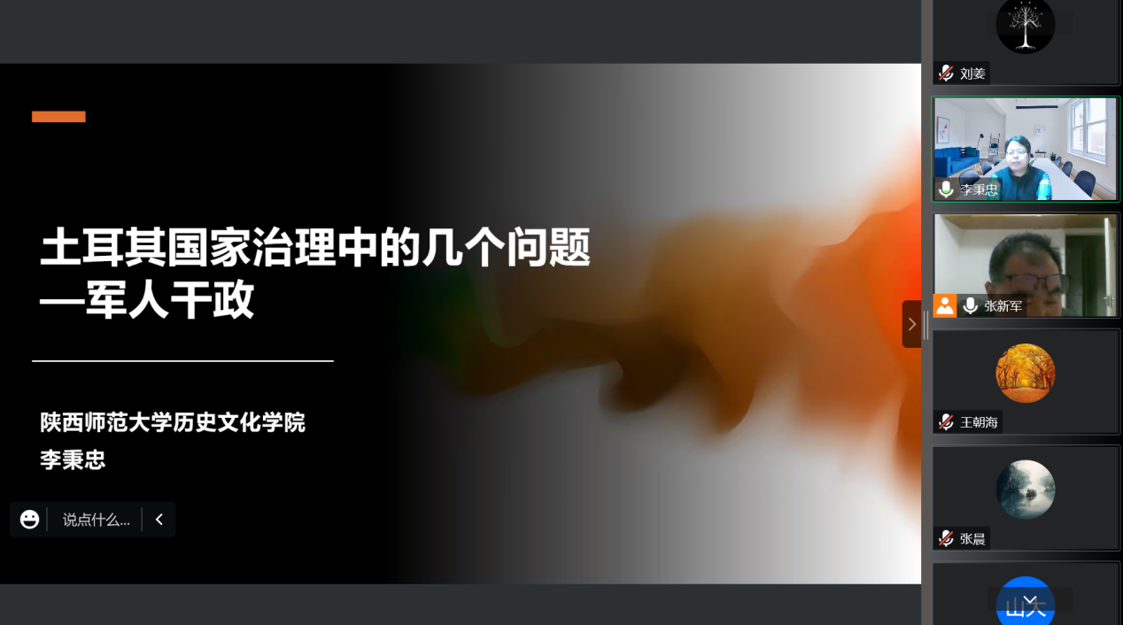 2022年11月15日晚,应宁夏大学民族与历史学院历史系邀请,我中心主任李秉忠教授做客宁夏大学民族学与文化旅游产业研究系列讲座“贺兰山大讲堂”第七十七讲,面向广大师生作了题为“土耳其国家治理中的几个问题——军人干政”的报告。本次讲座由宁夏大学民族与历史学院历史系张新军副教授主持。